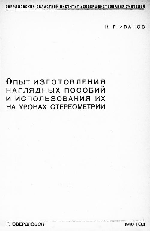 Иванов И. Г. Опыт изготовления наглядных пособий и использования их на уроках стереометрии. — 1940