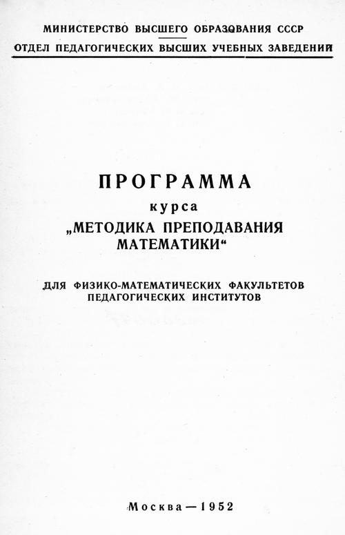 Программа курса «Методика преподавания математики» для педагогических институтов. — 1952
