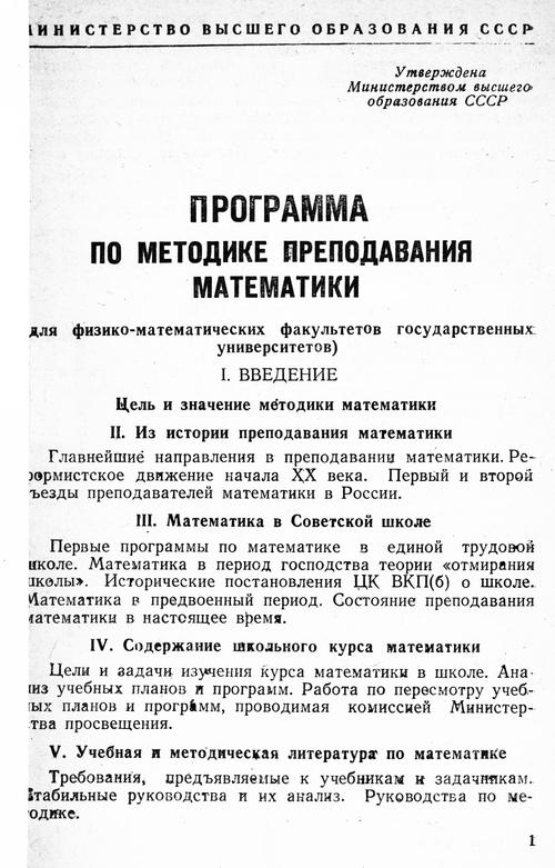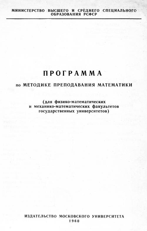 Программа по методике преподавания математики для государственных университетов. — 1960