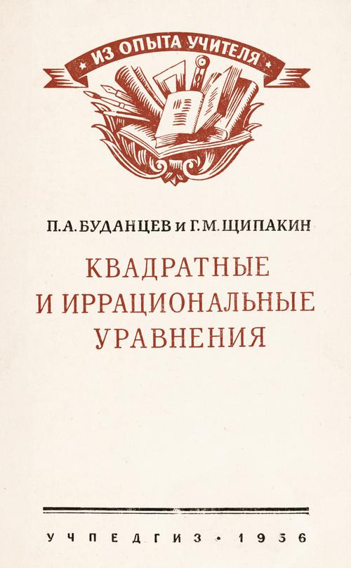 Буданцев П. А., Щипакин Г. М. Квадратные и иррациональные уравнения. — 1956