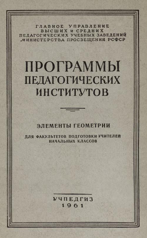 Программы педагогических институтов. Элементы геометрии. — 1961