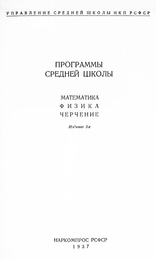 Программы средней школы. Математика, физика, черчение. — 1937