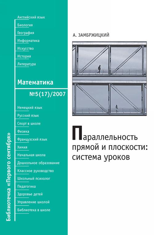 Параллельность прямой и плоскости: система уроков  Замбржицкий А. И. Параллельность прямой и плоскости : система уроков. — М. : Чистые пруды, 2007. — 32 с. — (Библиотечка «Первого сентября», серия «Математика» ; вып. 5(17)).Параллельность прямых3