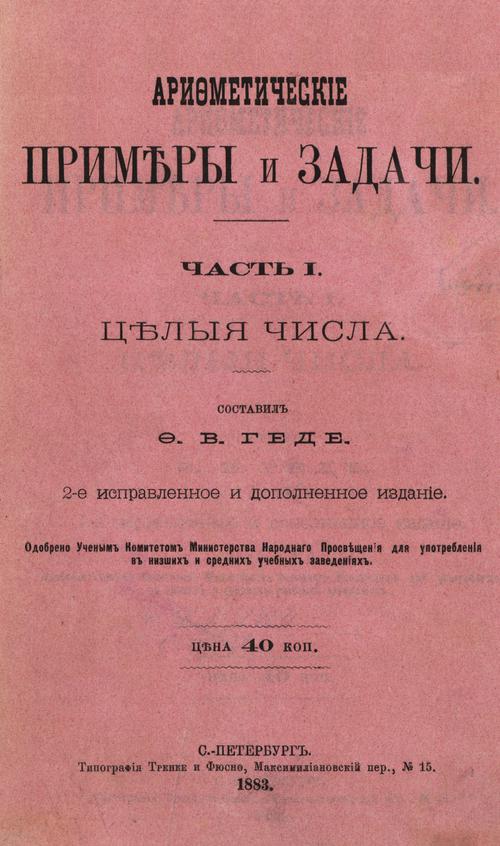 Геде Ф. В. Арифметические примеры и задачи. Ч. 1. Целые числа. — 1883