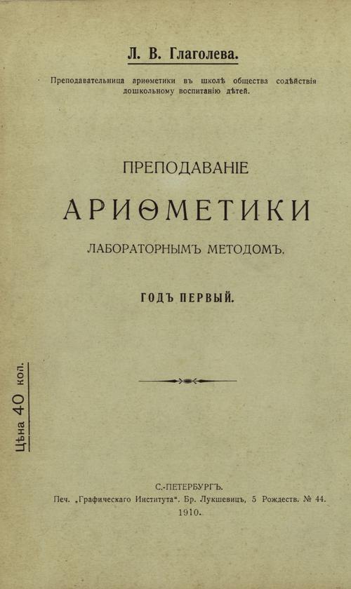 Глаголева Л. В. Преподавание арифметики лабораторным методом. Год первый. — 1910